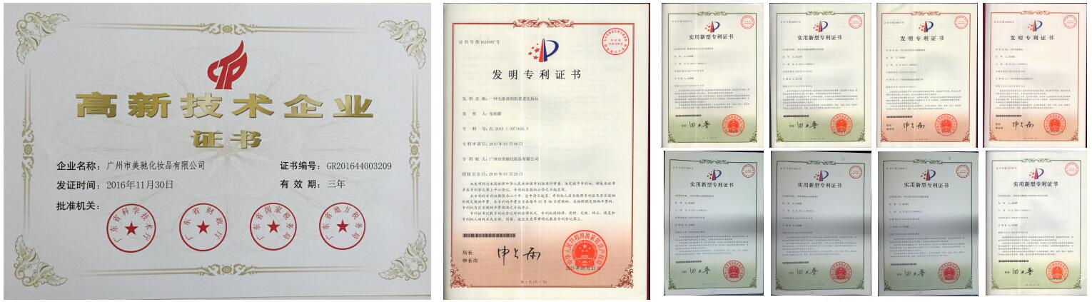 13年來美馳公司不僅高標準要求著企業的生產,也積極開展技術研發,與中科院等科研機構達成戰略合作,取得突破性進步。獲得“無添加抗衰老化妝品”的發明專利及其他生產、灌裝的創新專利共10余個,并被評為“廣東省高新技術企業”。研發中心以持續的創新能力、完善的研發管理體系,至今已經完成輸出500多個產品配方品類,實施生產并上市的產品或品類共計300多個。