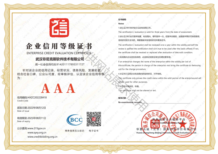 AAA級(jí)信用企業(yè)信用等級(jí)證書