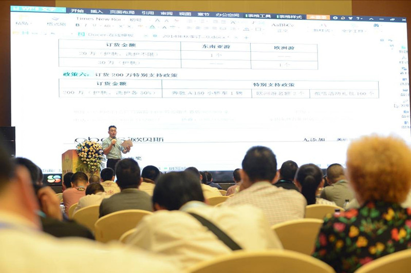 歐貝斯推廣部總監(jiān)孫寶姍先生向到會(huì)的合作伙伴講解訂貨政策,堪稱史上最大力度的訂貨政策使得許多合作伙伴紛紛當(dāng)場(chǎng)追加訂貨金額,現(xiàn)場(chǎng)氣氛達(dá)到高潮。
